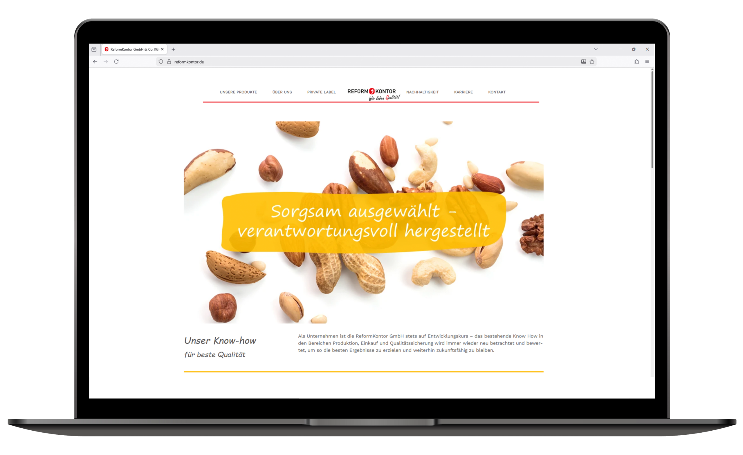 Konzeption und Umsetzung des Unternehmens-Webauftritts von ReformKontor mit dem Ziel, Markenpositionierung, Produktkommunikation und digitale Sichtbarkeit nachhaltig zu stärken.